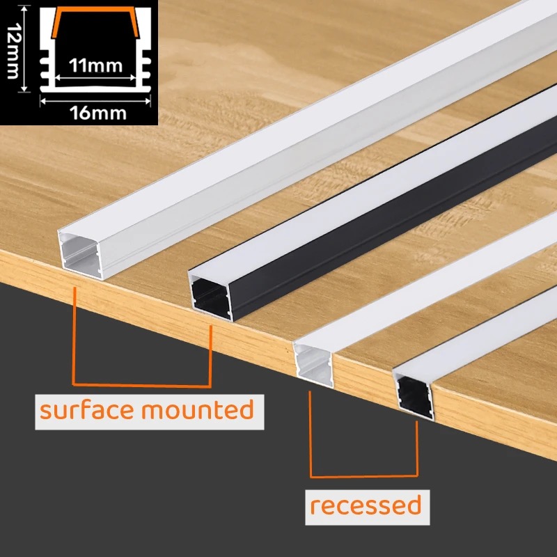 Barre lumineuse LED en forme de U, profilé en aluminium encastré, pour canal 0.5 5050, support de couvercle noir/laiteux, bande lumineuse linéaire, 5630 m/pièce